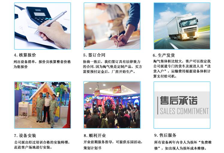 说明:本公司所有游乐设备均接受外形和规格的调整,如有特殊要求,可以与业务员详谈。公司所有游乐设备均经过充分包装,保证运送时产品安全;对于本公司产品,客户可以选择由我们派出的技术人员协助和指导安装工作。请注意:游乐设备需要防火、防割,尽量避免与易燃或者锋利的物品接触!